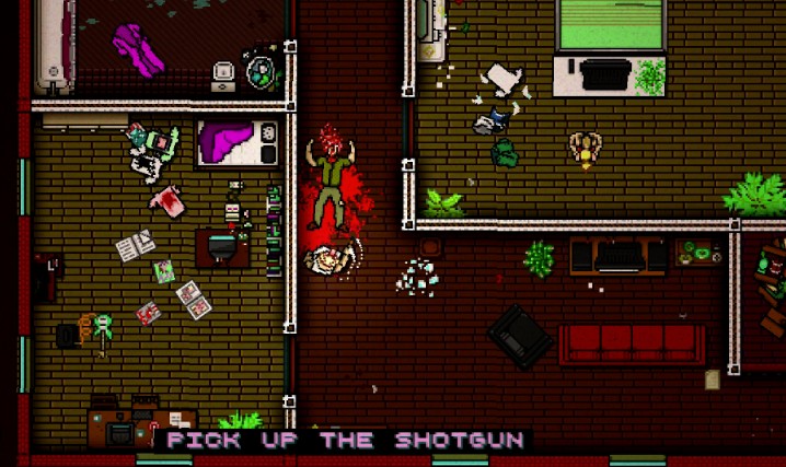 Each mission starts outside a building filled with enemies. Once you walk in, the action doesn’t stop until the last body hits the floor. You can pick up bats, knives, shotguns—whatever you can find—and take out enemies with melee strikes or gunfire. But be careful: one hit and you’re dead. Since the enemies strike just as hard as you do, the difficulty is in determining the best strategy and order. Failure is inevitable in this game of trial and error, but so is the opportunity to try again.