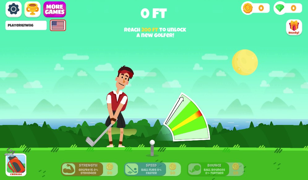The main goal is to send your ball as far as possible. Each hit is recorded, so you can keep pushing your limits. Hitting a perfect shot gives your ball unstoppable force, breaking through trees, houses, or anything in its path. Just don’t let it land in water or sand, or you’ll lose momentum.