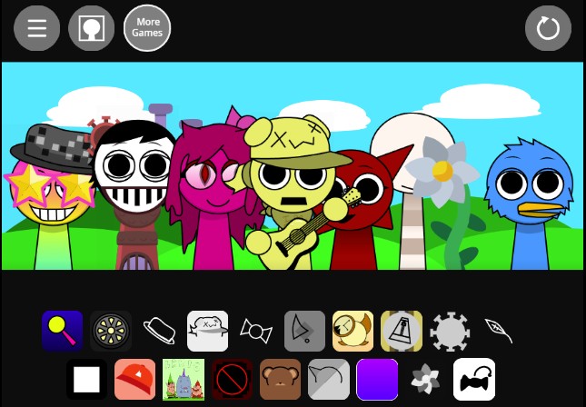 From glitchy icons to rare background effects, Sprunki All Bonus mixes content from deep cuts and fan-favorite mods alike. The character lineup is packed, and each loop brings back memories of where it originally came from—whether it’s that one chaotic scream loop from Wenda Phase 30 or the dreamy pad from a forgotten beta version. The transitions feel surprisingly cohesive for a mashup mod, letting you explore tons of variety without things feeling random or disconnected.